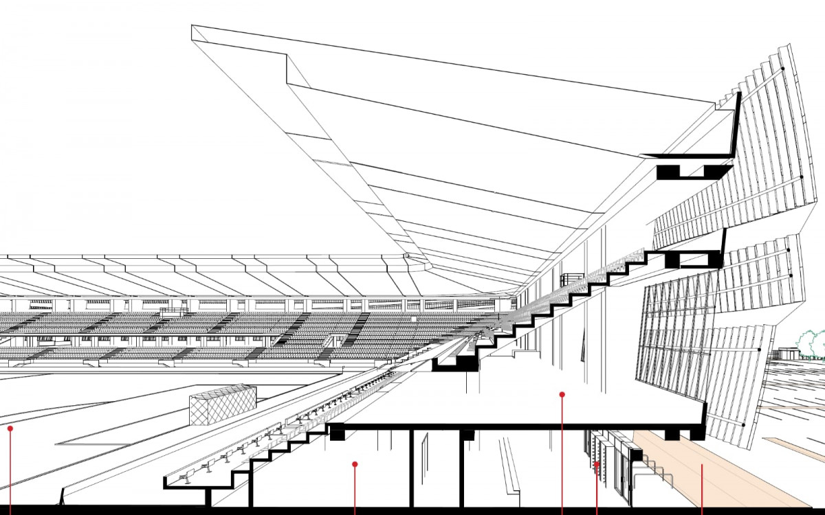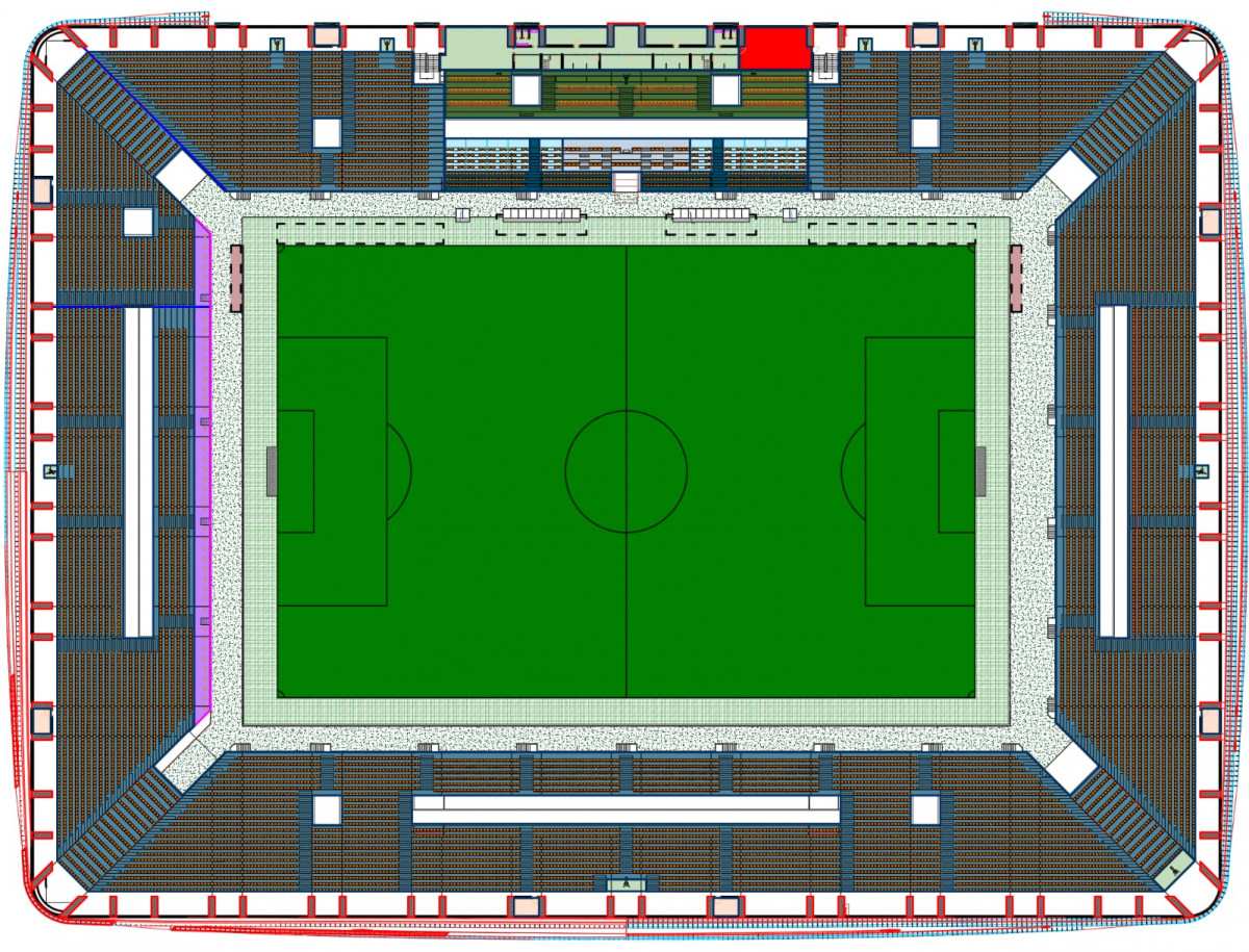 Stadionun 3-cü və 4-cü mərtəbələrdə jurnalistlər üçün iş sahələri nəzərdə tutulmuşdur.